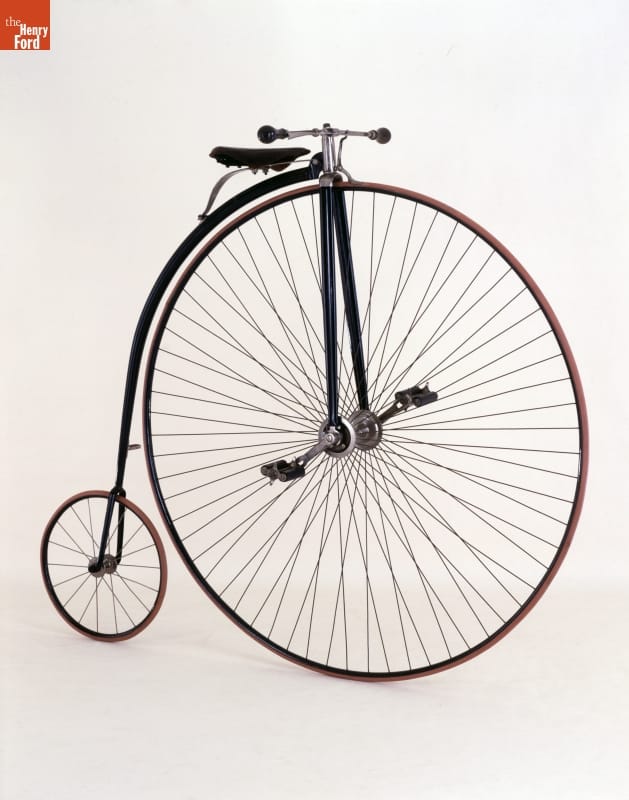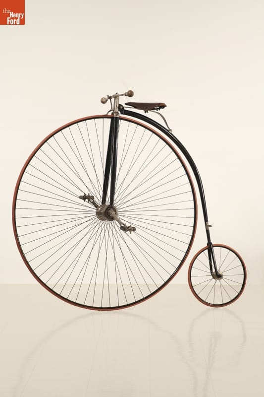 Pope Manufacturing Company manufactured this Expert Columbia bicycle in 1884. By the mid-1880s, the high-wheel ordinary incorporated many innovations such as steel-tube-frame construction, ball bearings, and wire wheels with rubber tires. These improvements made the ordinary a popular recreational and sporting machine. But the difficulty in mounting and safety concerns tended to limit its use mainly to athletic young men.