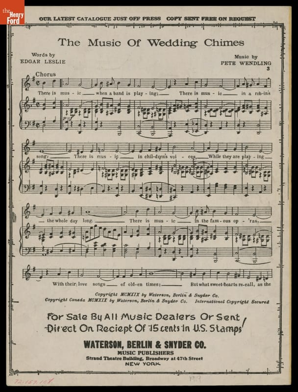 Music composed by Pete Wendling, lyrics by Edgar Leslie and Bert Kalmar. Arranged by Fred E. Ahlert. Original cover artwork by Barbelle. Published by Waterson, Berlin & Snyder Company, New York, York.