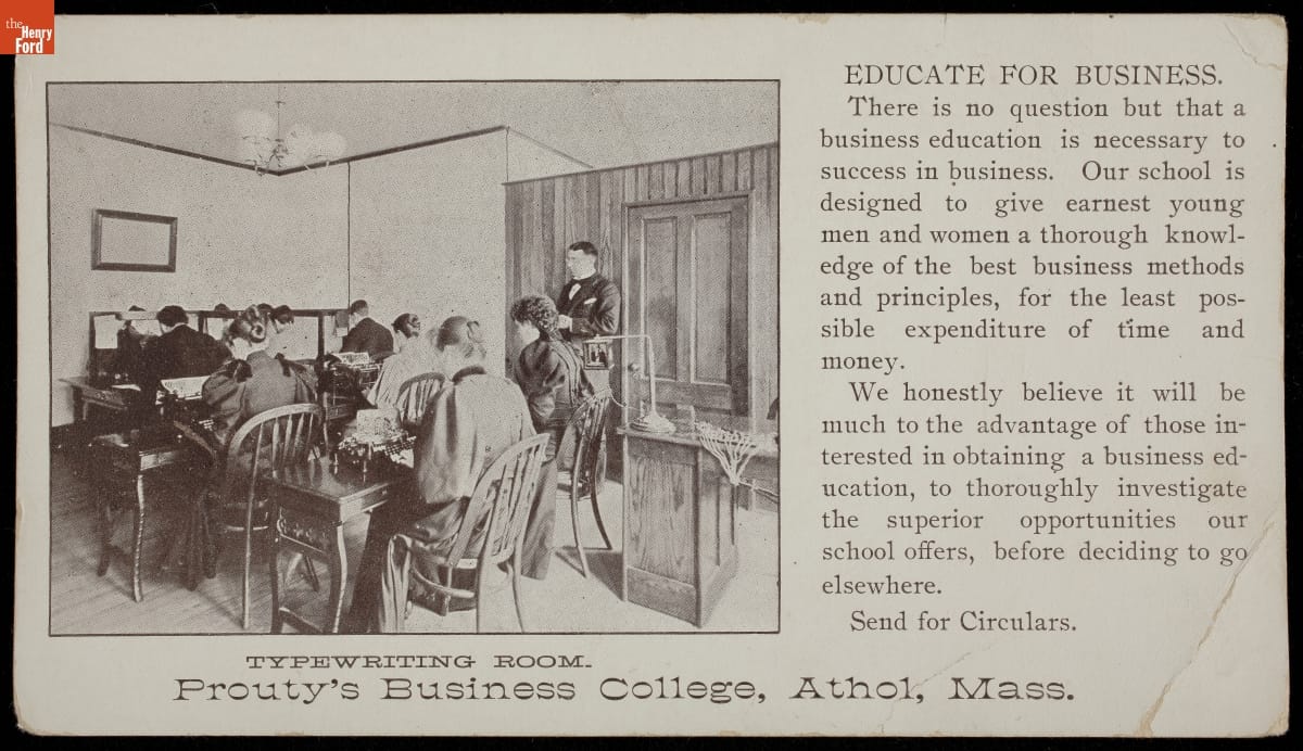 Trade Card for Prouty's Business College, circa 1895