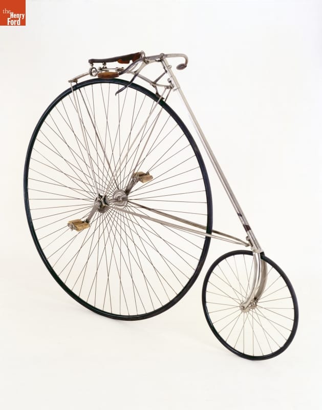 The Eagle Bicycle Manufacturing Company built this high-wheel safety in 1891. The Connecticut company copied other manufacturers by placing the small wheel up front and the large drive wheel in back -- preventing the dreaded "header." Still, it was difficult to mount; cyclists had to swing their leg over the large wheel. Low-mount safeties with equal-sized wheels solved this problem.