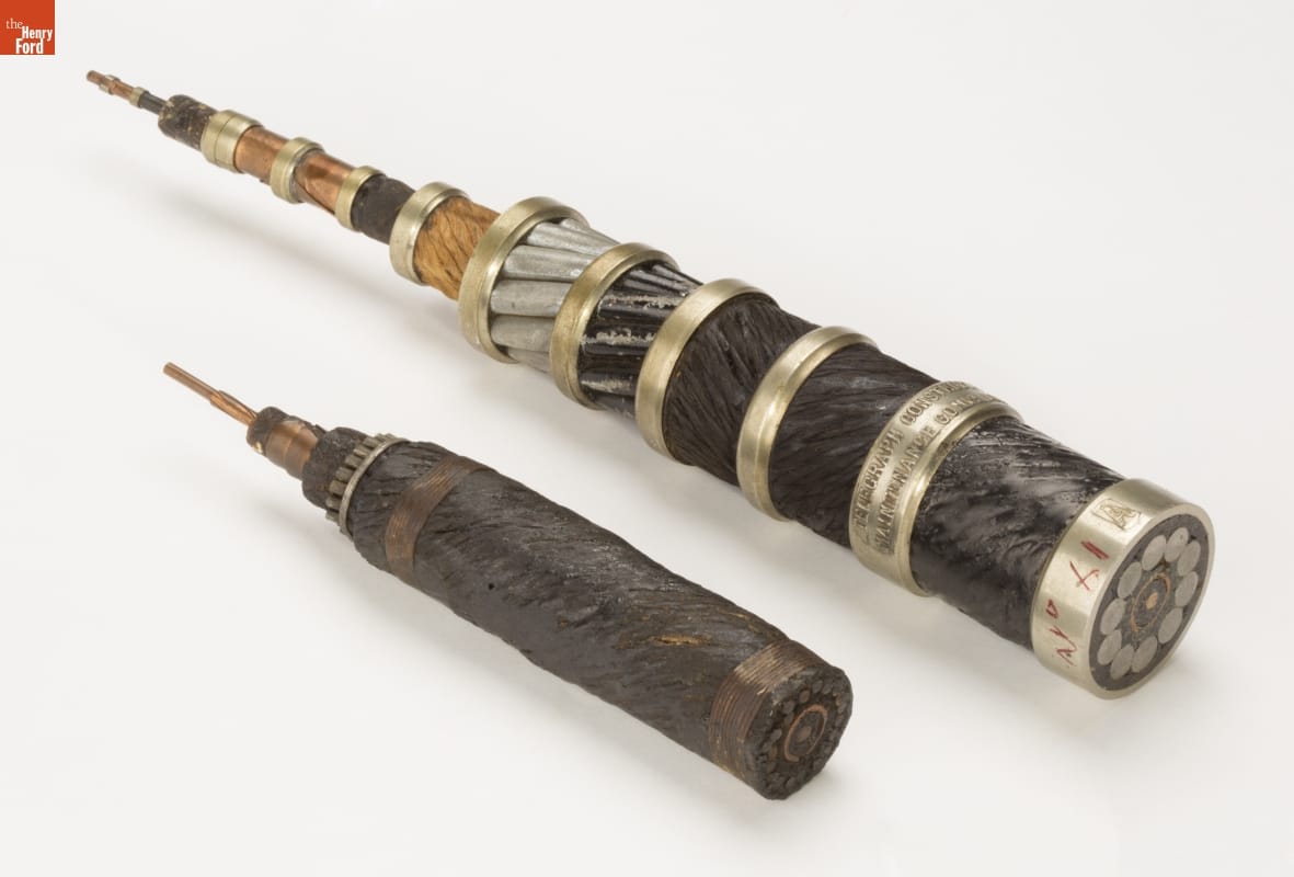 In 1921, the first submarine telephone and telegraph cable was laid between Key West, Florida, and Havana, Cuba. These cables represent the rugged shore end and thinner deep sea section of this communications link. Even with difficult diplomatic relations, AT&T continued service over US-Cuba cables until the late-1980s, when all existing cables were either cut or too damaged for use.