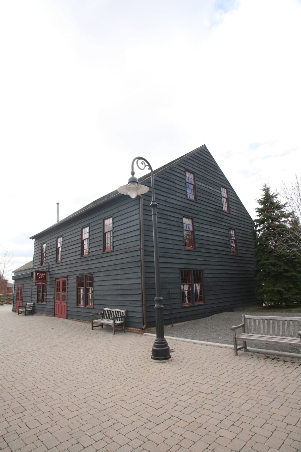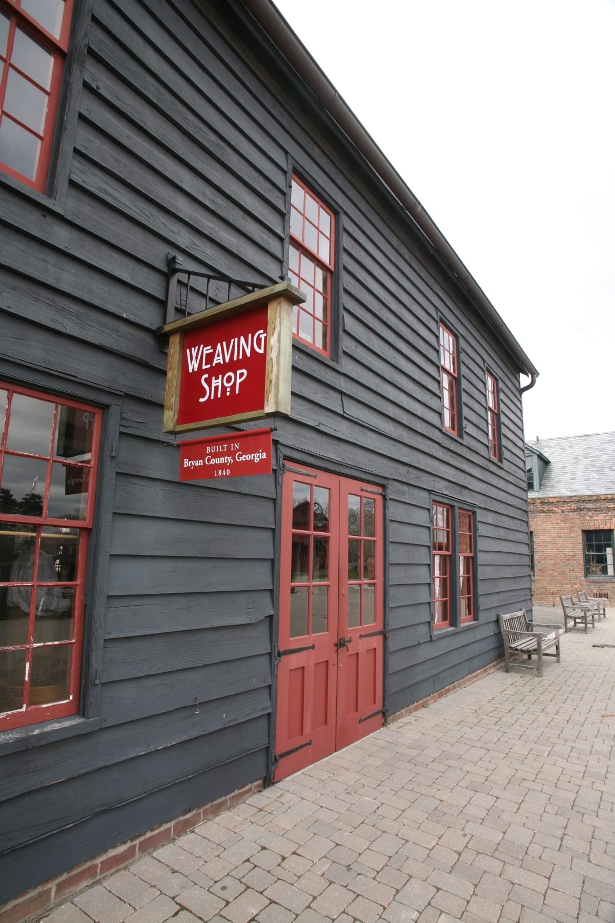 The Greenfield Village Weaving Shop demonstrates the evolution of textile production from the colonial home and craft shop, through the Industrial Revolution to commercial factory. Housed in a converted 1840s Georgia cotton mill, the Weaving Shop contains a number of working looms, including one of the few operating mechanical Jacquard looms in North America.