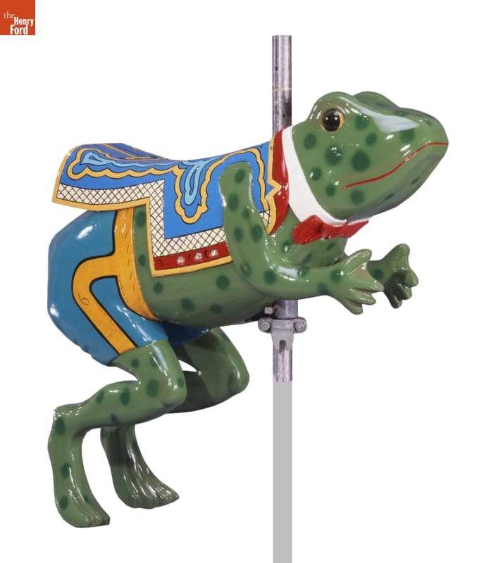 In the early 20th century, amusement park goers dressed in their Sunday best climbed aboard colorful, hand-carved animals to enjoy a carousel ride. Horses were most common, but riders could choose from more exotic creatures found on some carousels. Herschell-Spillman made this whimsical frog -- the only carousel manufacturer to do so. It's the only American carousel animal you'll see wearing human clothing.