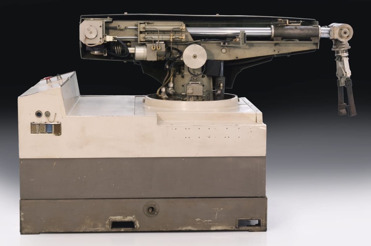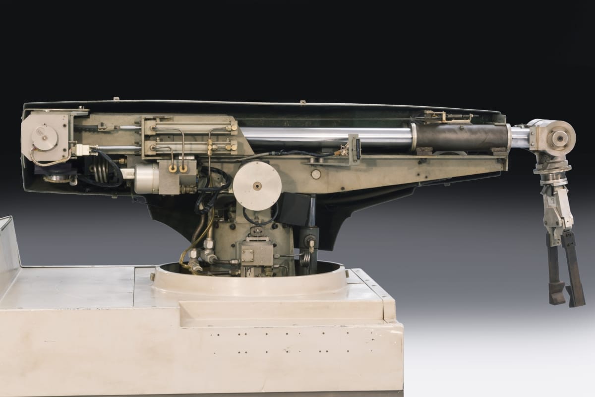Designed by George C. Devol and Joseph F. Engelberger and made by Unimation, Inc., Danbury, Connecticut.