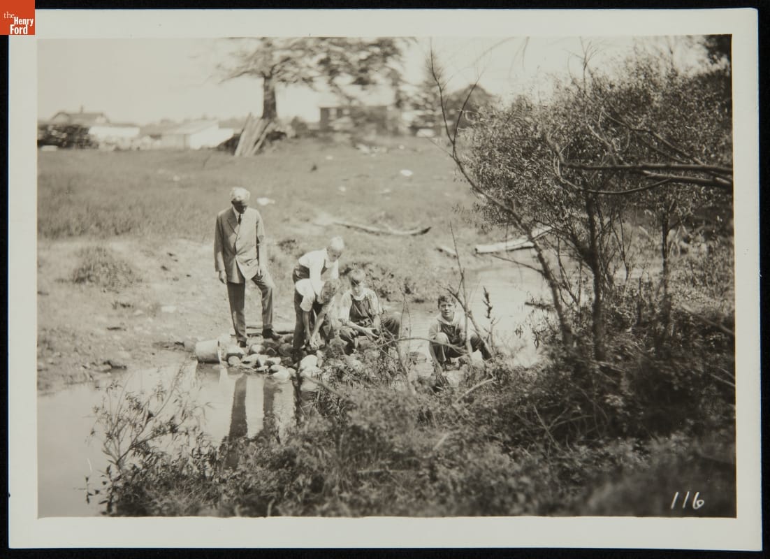 Henry Ford Building a Dam with Leonard and Raymond Firestone and Others, Columbiana County, Ohio, August 1918