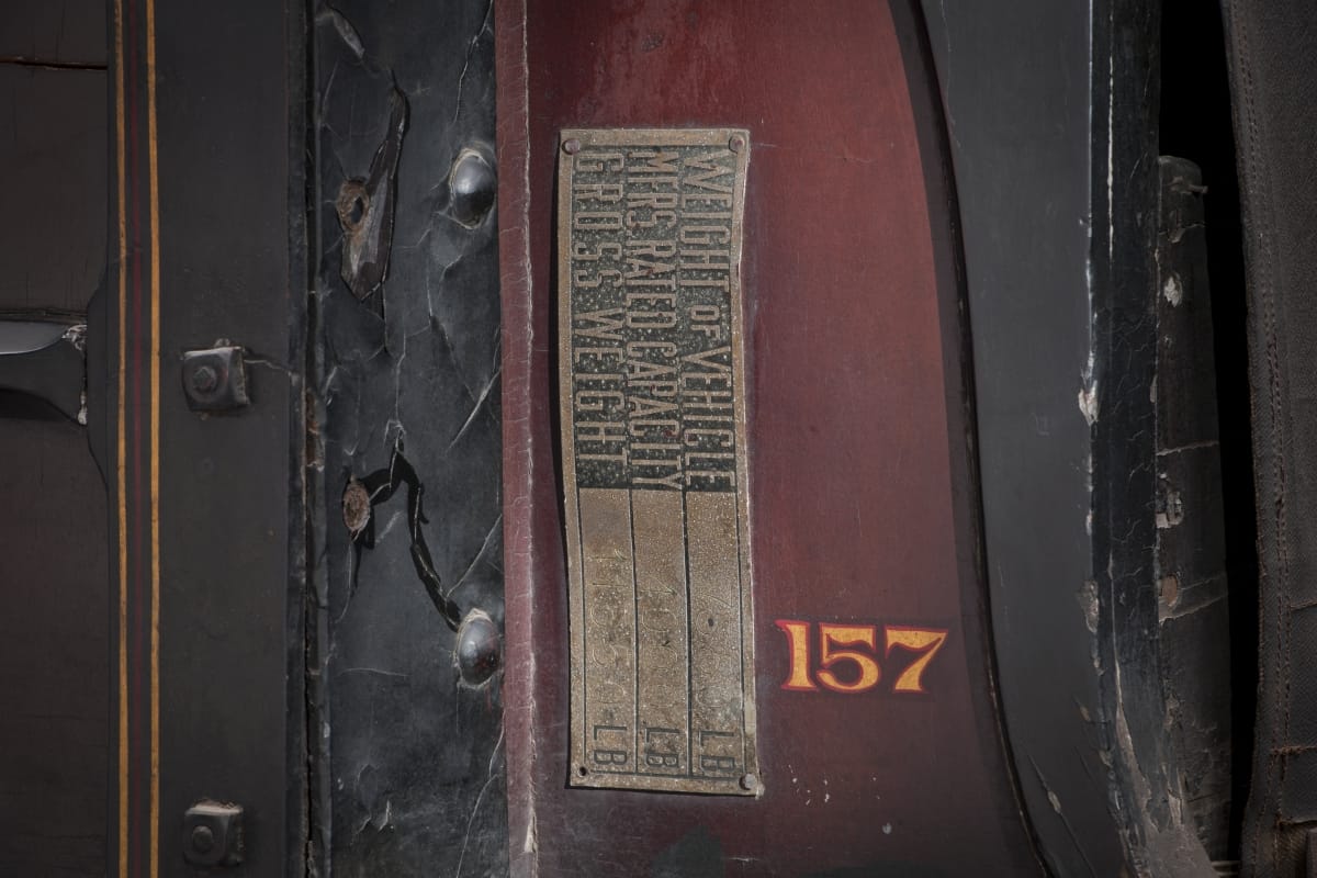 Right side of seat: WEIGHT OF VEHICLE 7550 LB/MFRS RATED CAPACITY 400 LB/GROSS WEIGHT 11550 LB [and in gold] 157