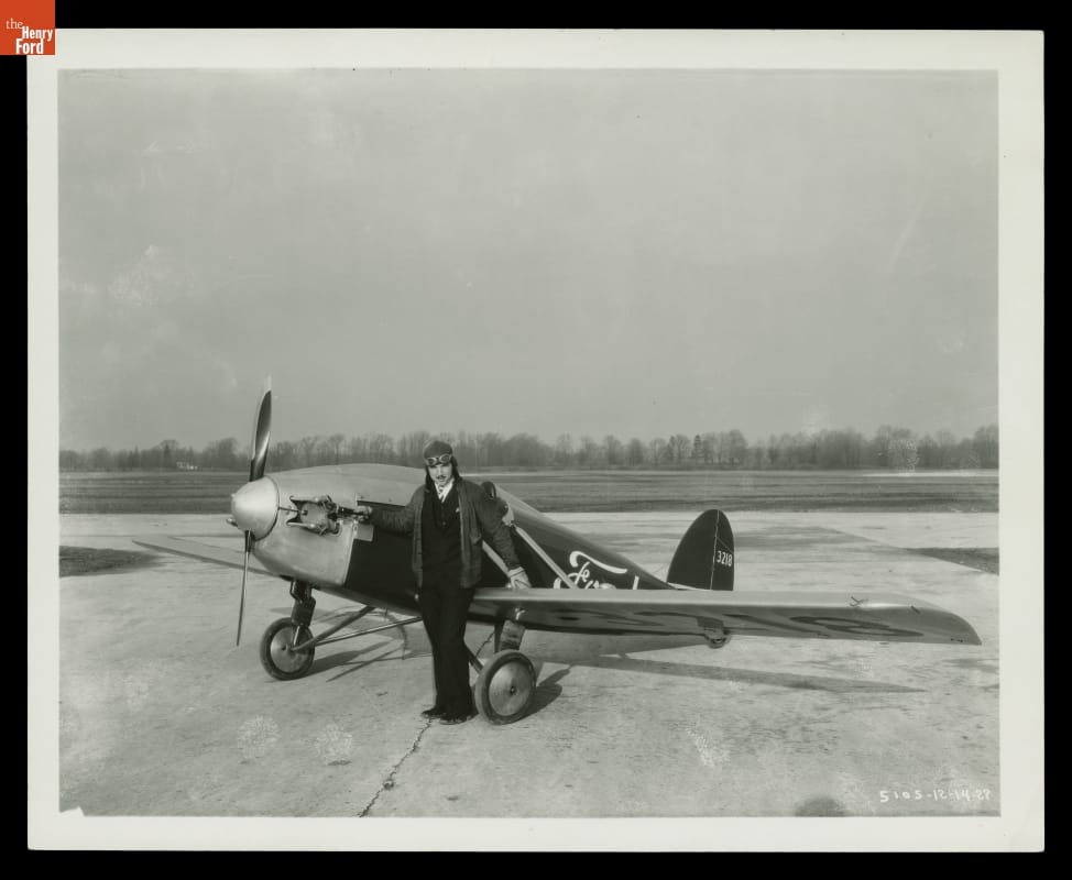 Harry Brooks with Ford Flivver Airplane #3 at Ford Airport, December 1927