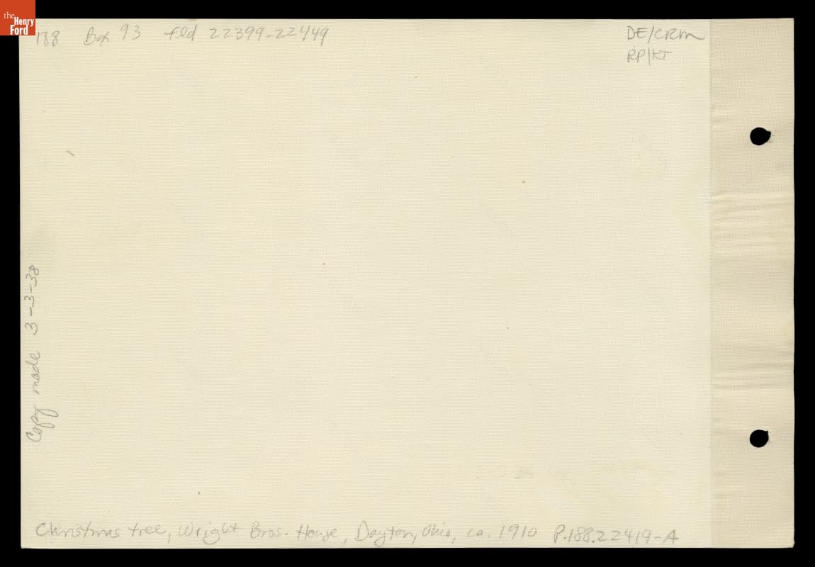 Wright Home Parlor Decorated for Christmas, Original Site, Dayton, Ohio, circa 1900