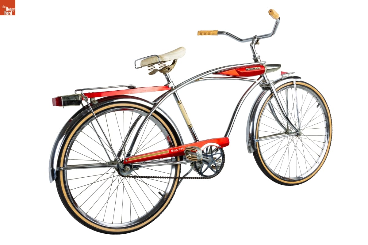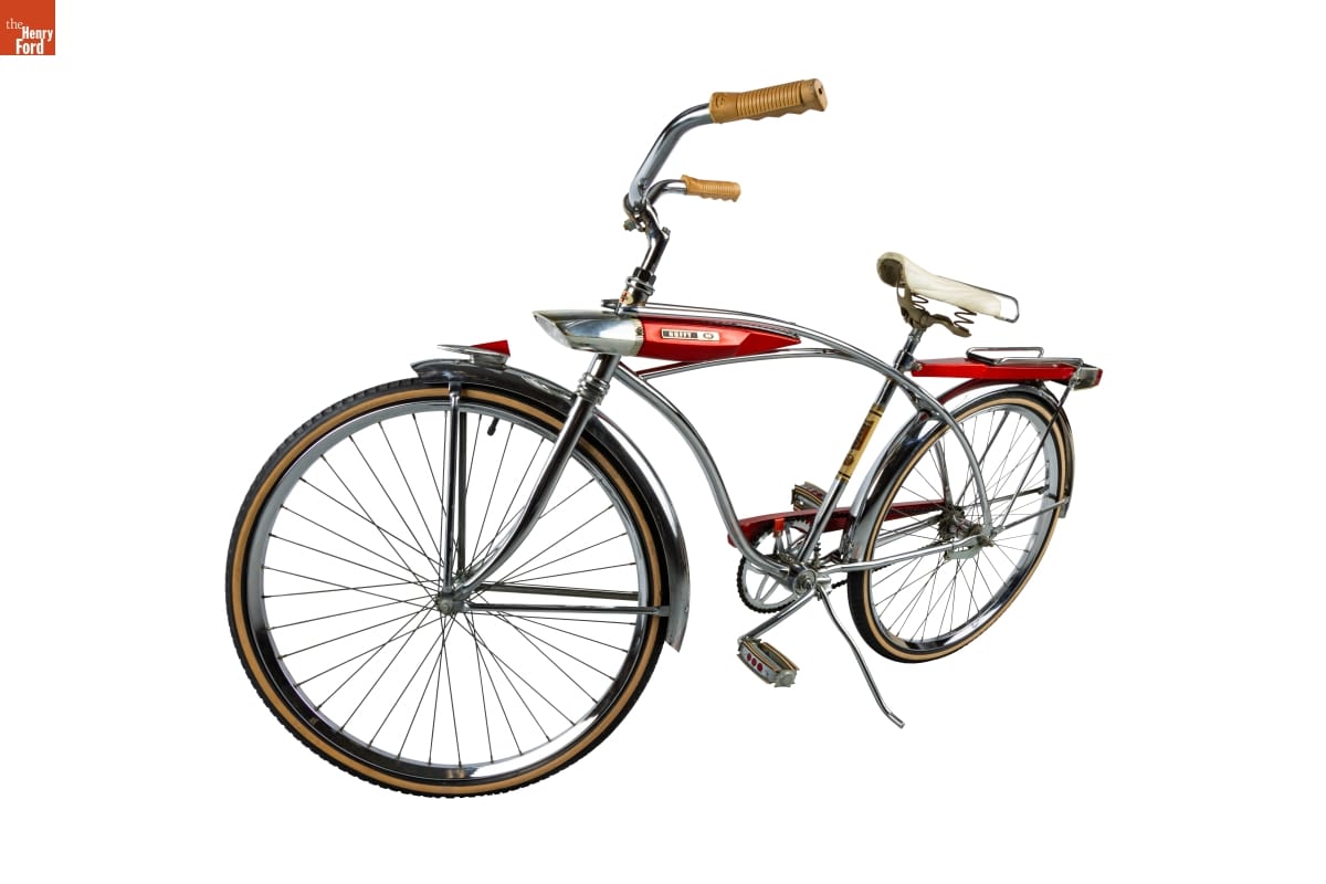 Huffman Manufacturing Company had its origins in the bicycle boom of the 1890s. The company thrived in the mid-20th century by making popularly priced children's bikes. Huffman built its five millionth bicycle in 1964. The special bike's sleek headlight, comfortable saddle, and rear rack provided everything a kid could want in pedal-powered transportation.