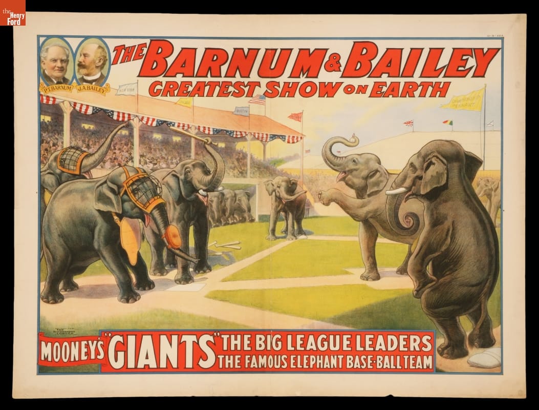 Circus Poster, Barnum & Bailey Circus Presents Mooney's "Giants," The Famous Elephant Base-Ball Team, 1913