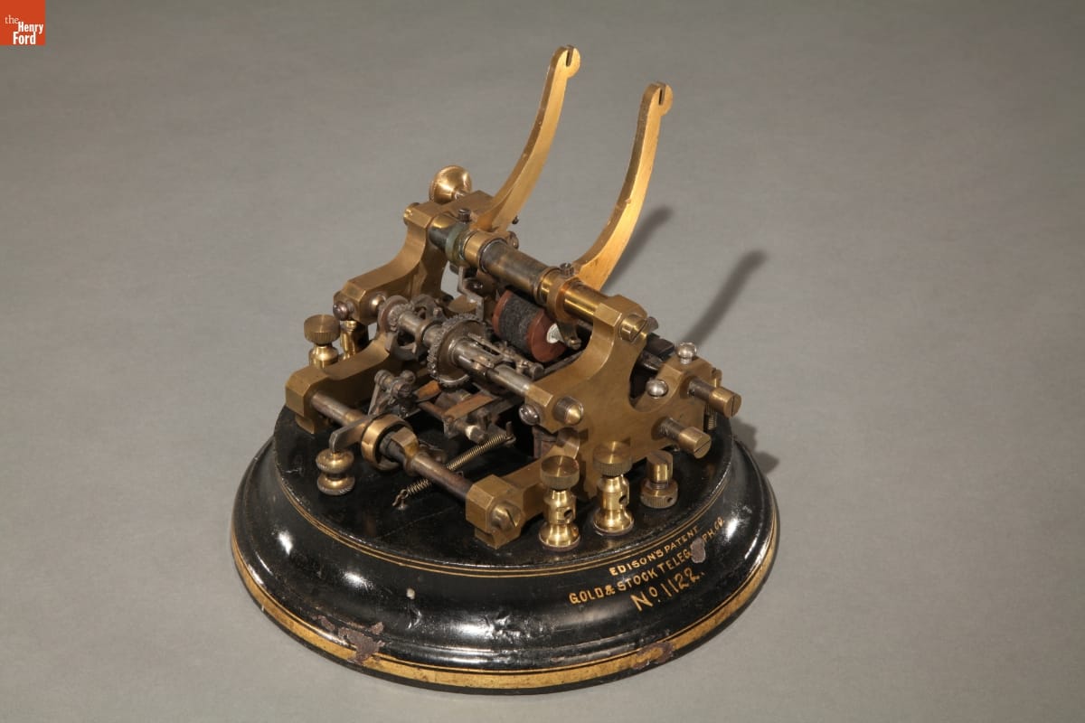 Painted on base: GOLD & STOCK TELEGRAPH CO.; EDISON & UNGER MAKERS; NEWARK, N.J.; NO. 1122