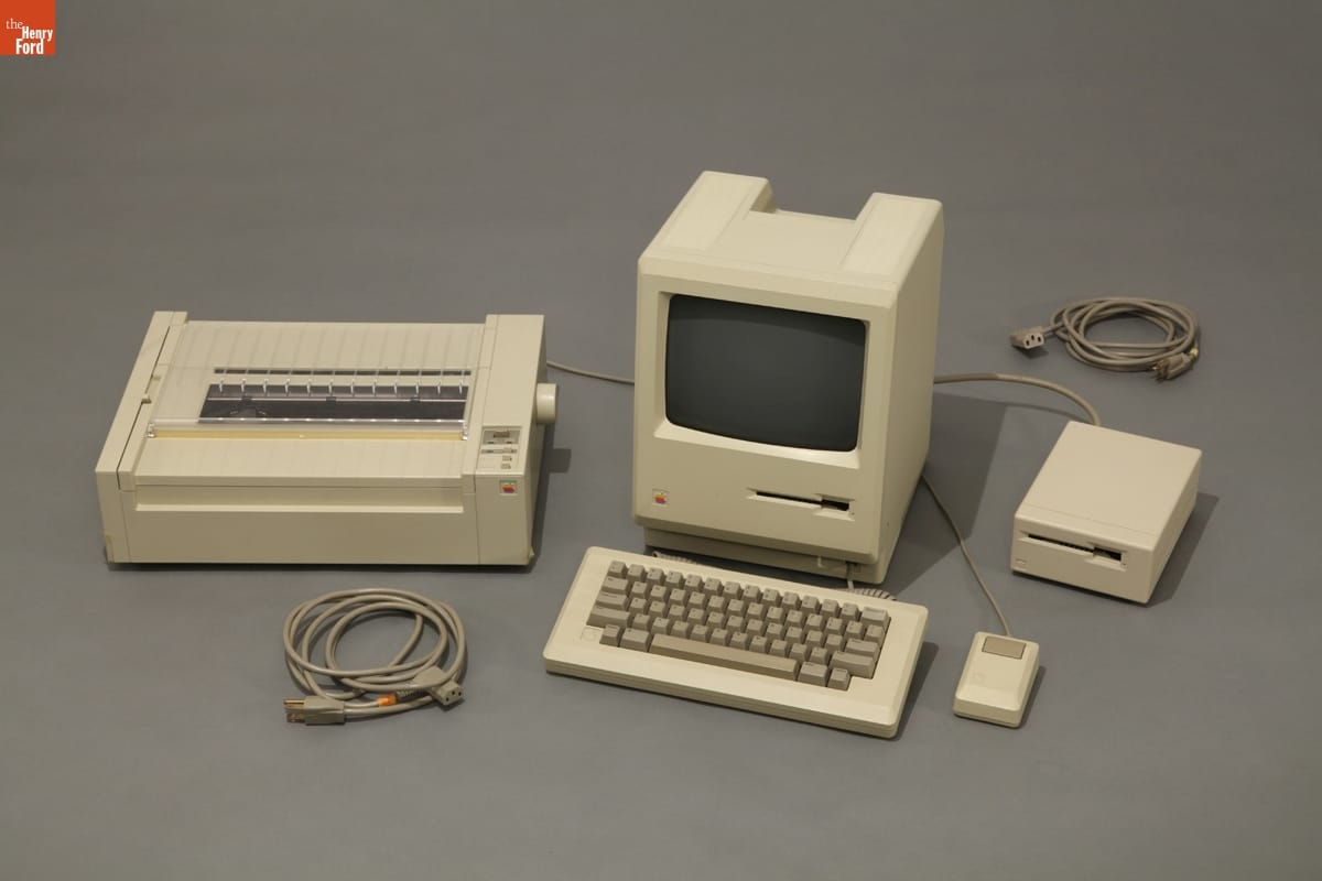 In 1984, the Apple Macintosh became the first popular personal computer to feature the now-ubiquitous mouse and "graphical user interface" desktop. Despite the Mac's relatively high price, its user-friendly features helped it demystify computing for many people without a technical bent. This computer is a Macintosh 512k, released in 1985 with increased memory.