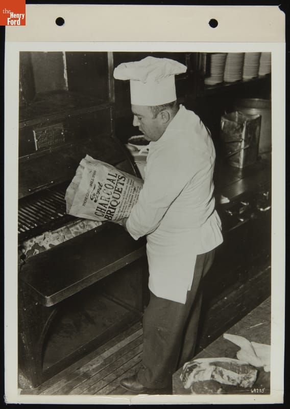Using Ford Charcoal Briquets for Grilling in Restaurant Kitchen, 1937