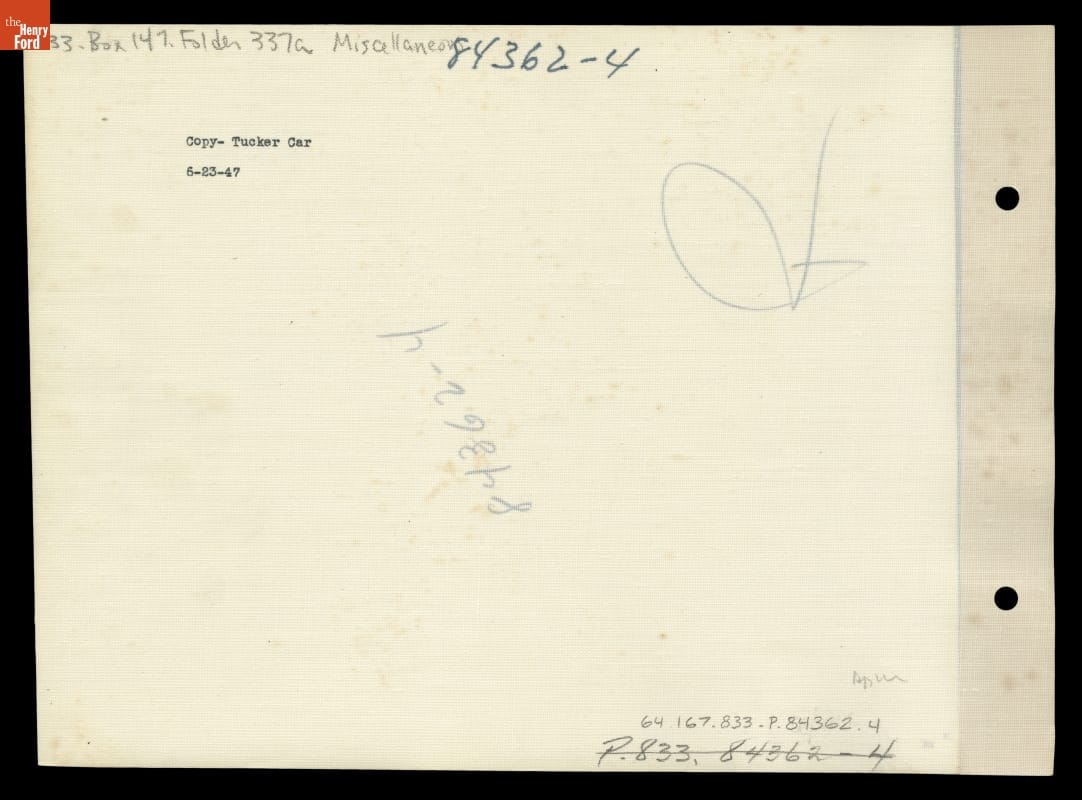 Original photographer is unidentified. Copied June 1947 by Ford Motor Company Photographic Department