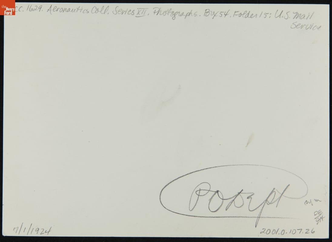 Early pilots depended on visual landmarks, preventing reliable nighttime navigation. When the postal service took to the skies with transcontinental mail delivery, a lighted pathway was formed to guide pilots at night. Throughout the 1920s, a series of powerful light beacons was built, eventually stretching from New York to San Francisco. This image celebrates Cleveland's first night mail flight.