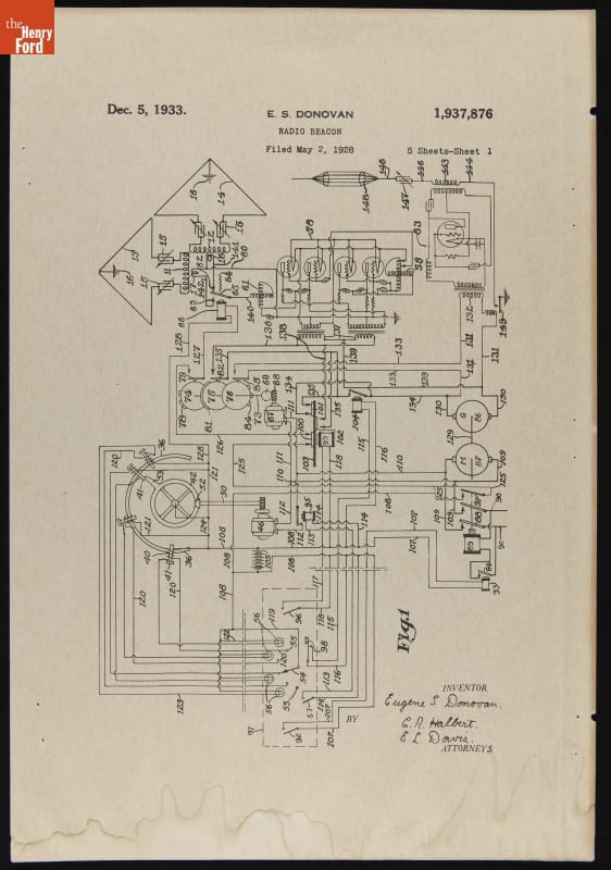 Diagram for Radio Beacon Patent, #1,937,876, Granted December 5, 1933
