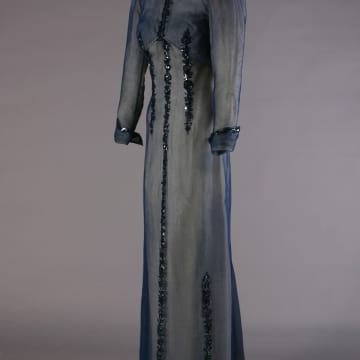 Elizabeth Parke, daughter of a prosperous Decatur, Illinois, businessman, and Harvey S. Firestone, Jr., son of the founder of the Firestone Tire and Rubber Company, married in June 1921. Twenty-five years later, the couple celebrated their wedding anniversary at New York's Ritz Hotel. Mrs. Firestone, well known for her refined sense of fashion, wore a sequined and beaded gown by American designer Carrie Munn.