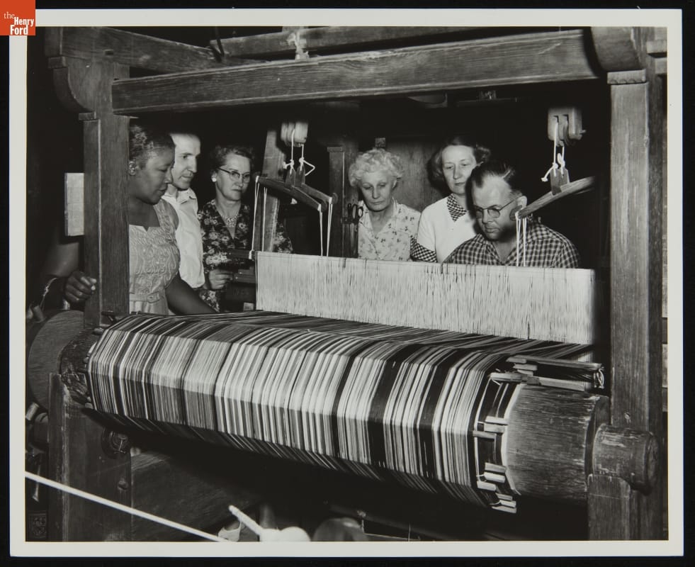 Craftspeople have presented weaving demonstrations at Greenfield Village since it opened to the public in 1933. Over the years, weavers have used several historic and refurbished looms located in the Plymouth Carding Mill (now Gunsolly Carding Mill) to create hand-crafted textiles. These presentations and resulting products help tell the story of textile production in America.