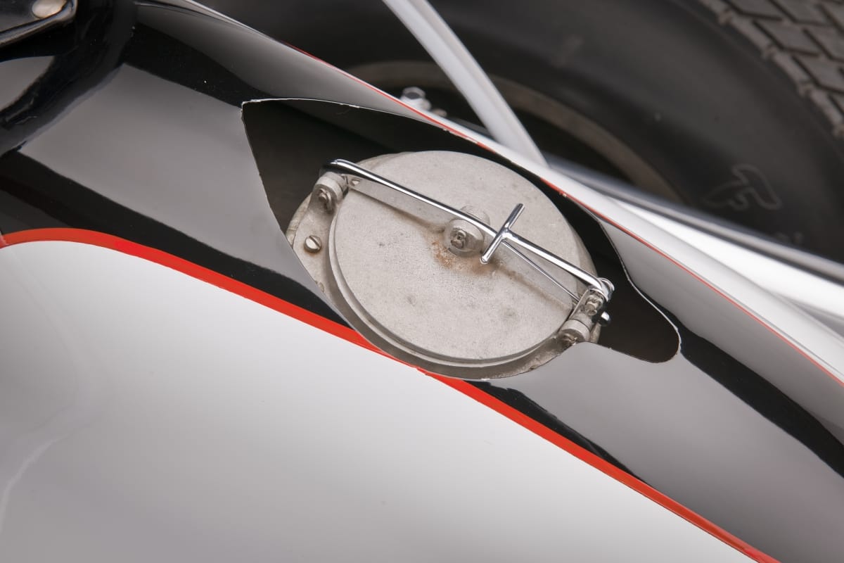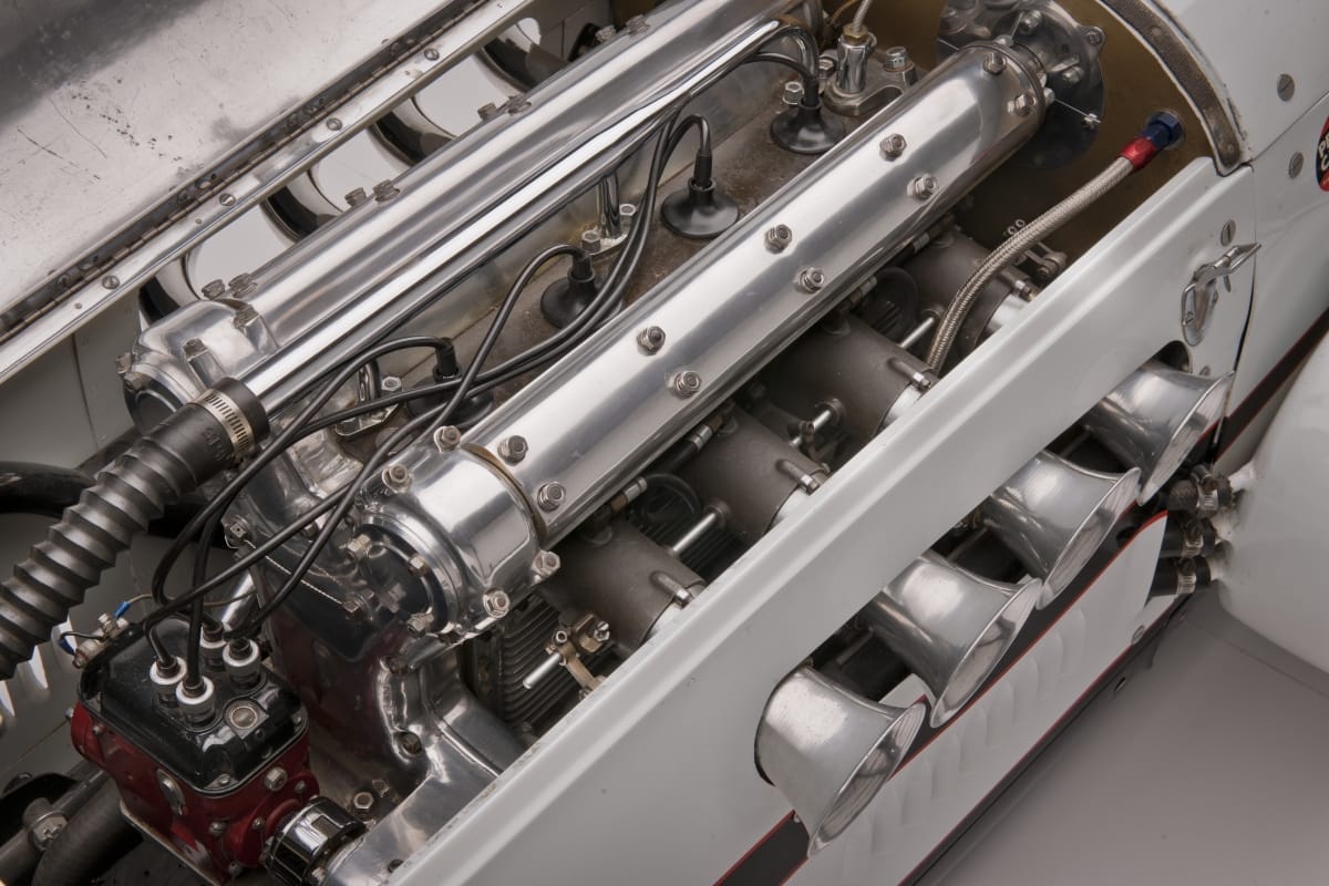 Engine: Meyer and Drake "Offenhauser" inline-4, double overhead cams, 255 cubic inches