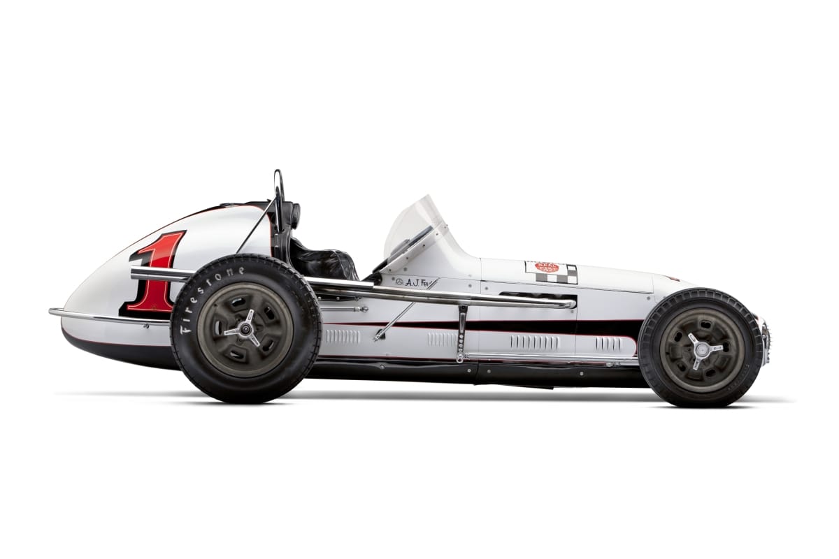 Between 1960 and 1963, A.J. Foyt won 13 of the 26 races he drove in this car. Under its hood is a version of the famous Offenhauser engine designed by Harry Miller and refined by Fred Offenhauser. "Offy" engines powered their first Indianapolis 500 winner in 1935 and their last in 1976. The final turbocharged versions pumped out 1,000 horsepower.