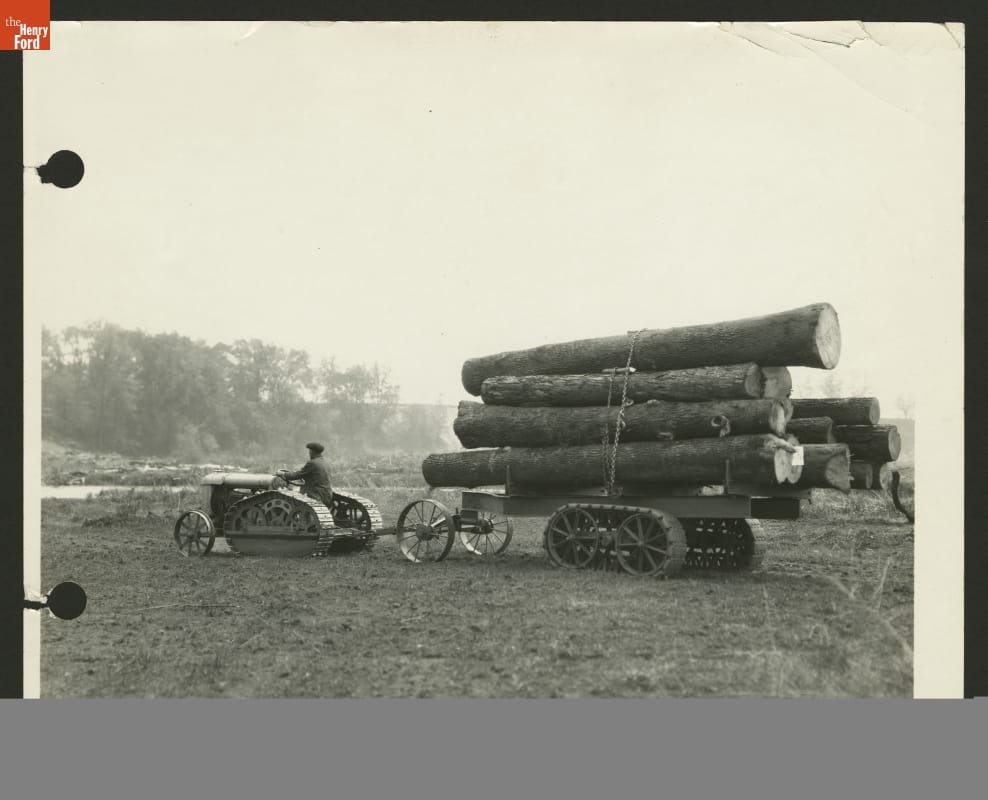 Logging Operations with Tractor and Log Hauling Trailer, Michigan, 1925