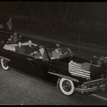 United States Secret Service agent Morgan L. Gies was responsible for White House vehicles from 1941 to 1967. This flag from his personal collection flew on Harry S. Truman's presidential limousine during an October 1951 visit from Princess Elizabeth (later Queen Elizabeth II) of the United Kingdom.