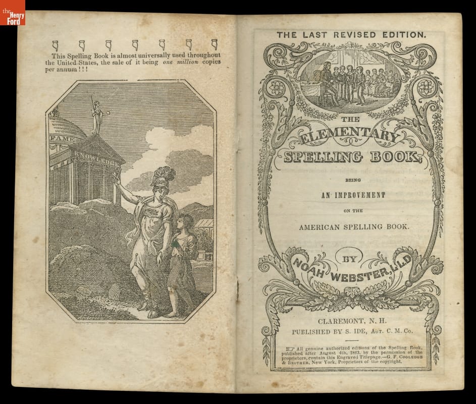 Noah Webster's speller offered simple guidelines for spelling and pronouncing American English words. Age-appropriate lessons taught schoolchildren to read and write, helping to define and unify American language. Known by its colored cover, Webster's "blue-backed speller" remained popular for more than 100 years. It sold so well that Webster was able to construct his New Haven, Connecticut, home using the proceeds.