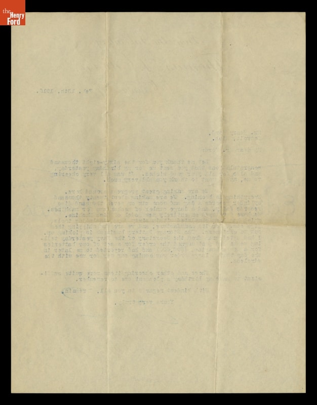 Letter from Thomas Edison to Henry Ford, February 13, 1915