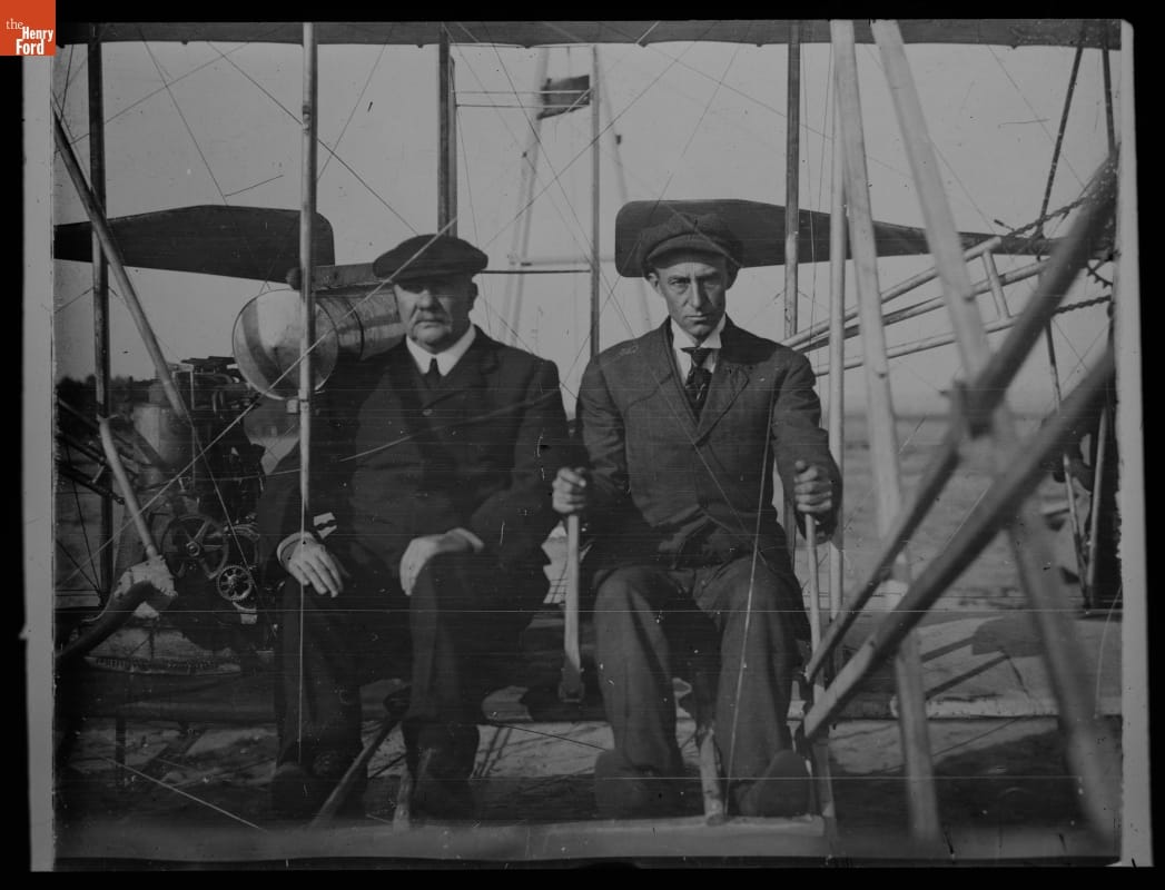 Wilbur Wright and Frank Butler in the Flyer, Camp d'Auvours, near Le Mans, France, 1908-1909