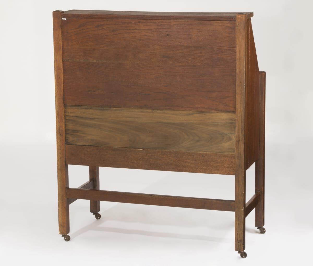 There were five Stickley Brothers: Gustav, Charles, Albert, Leopold and John George. All worked at one time during their careers for three major Stickley family firms, Gustav Stickley's Craftsman Workshops, Leopold and John Georges' L. and J.G. Stickley and Albert's Stickley Brothers. Stickley Brothers produced the largest volume of furniture to the mass market. This desk is illustrated in their 1912 catalogue.