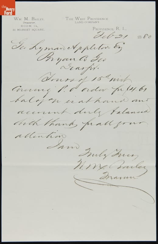Letter from William Bailey to George Appleton, February 21, 1880