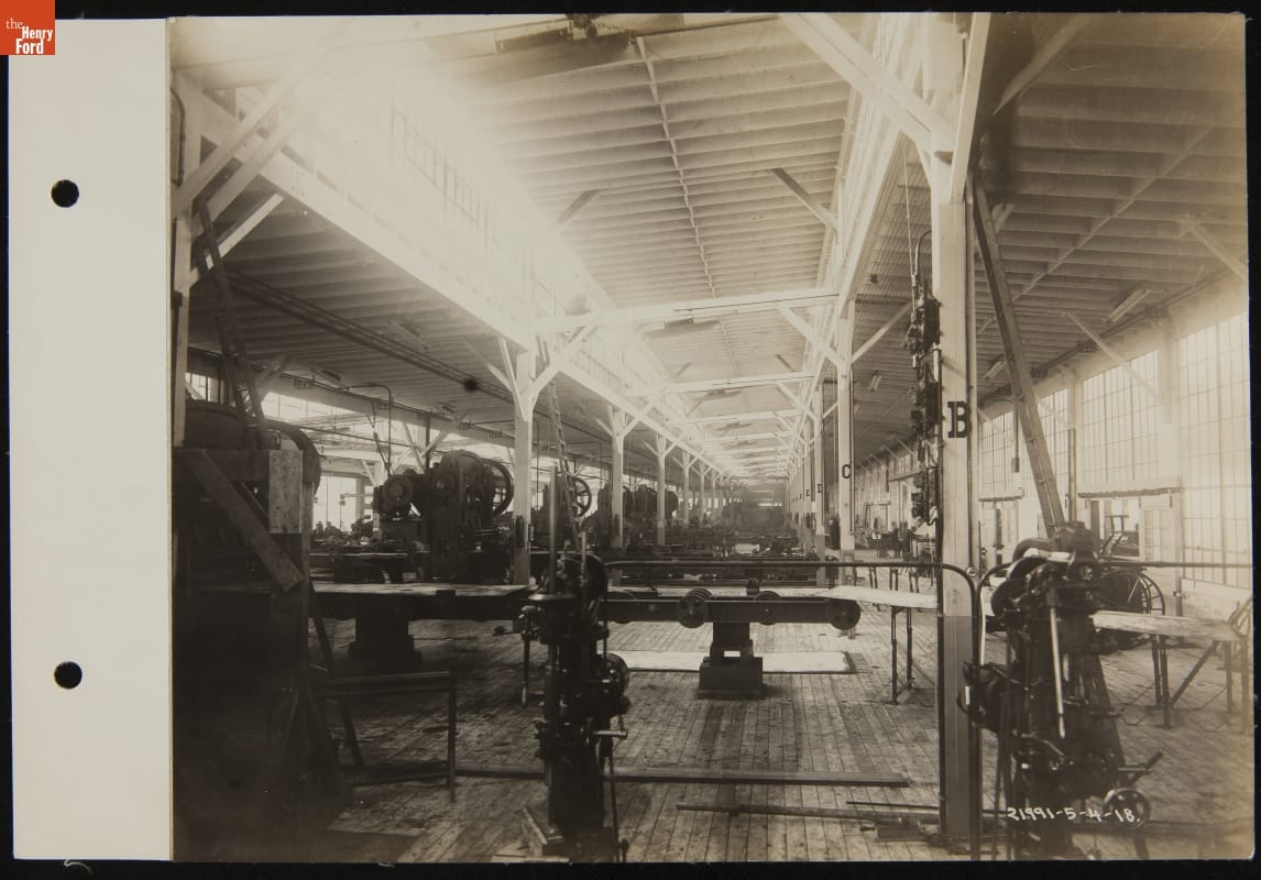 Equipment sat ready in the newly finished Building A at Ford Motor Company's Rouge factory in 1918. Specialized machines like these were essential to Ford's mass production methods. These machines were first used to build Eagle anti-submarine boats during World War I. Ford produced 60 of the boats between May 1918 and October 1919.