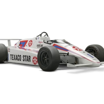 Sir Jackie Stewart, a three-time Formula One world champion driver and a leading advocate for motorsport safety, visited Henry Ford Museum in 1985. Stewart was in town for that year's Detroit Grand Prix, held on June 23. Here he poses with the newly acquired March 84C-Cosworth race car that Tom Sneva drove in the 1984 Indianapolis 500.