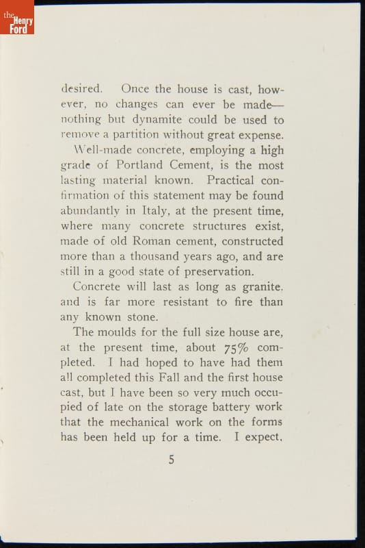 In 1899, after a failed attempt at ore mining, Thomas Edison formed the Edison Portland Cement Company. At his plant, Edison combined his mining operation's rock-crushing technology with new machinery he developed, like a more efficient cement kiln. These innovations drove overproduction in the cement industry, leading Edison to propose a radical use for the excess product -- concrete houses for working class families.