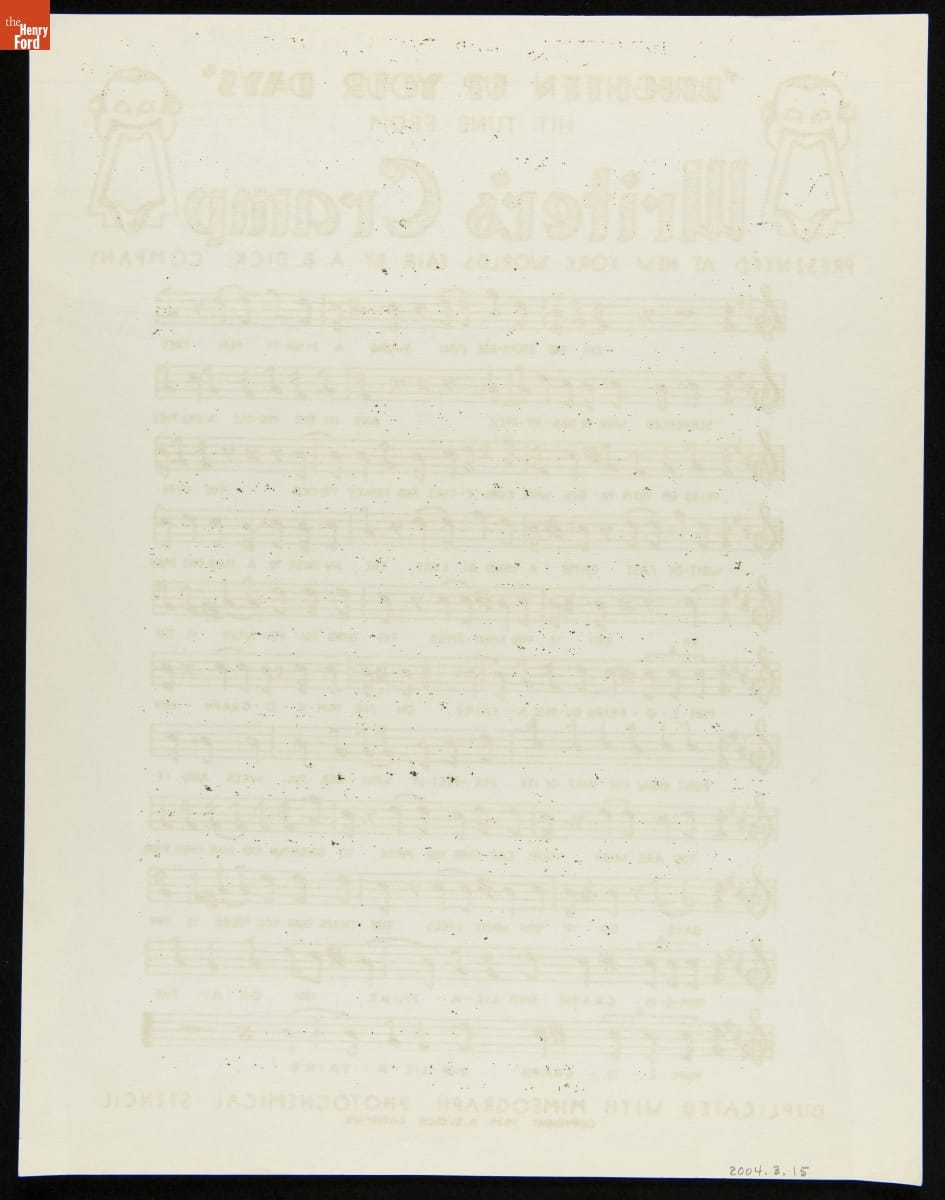"Brighten Up Your Days," Song for the Writer's Cramp Marionette Show, New York World's Fair, 1939