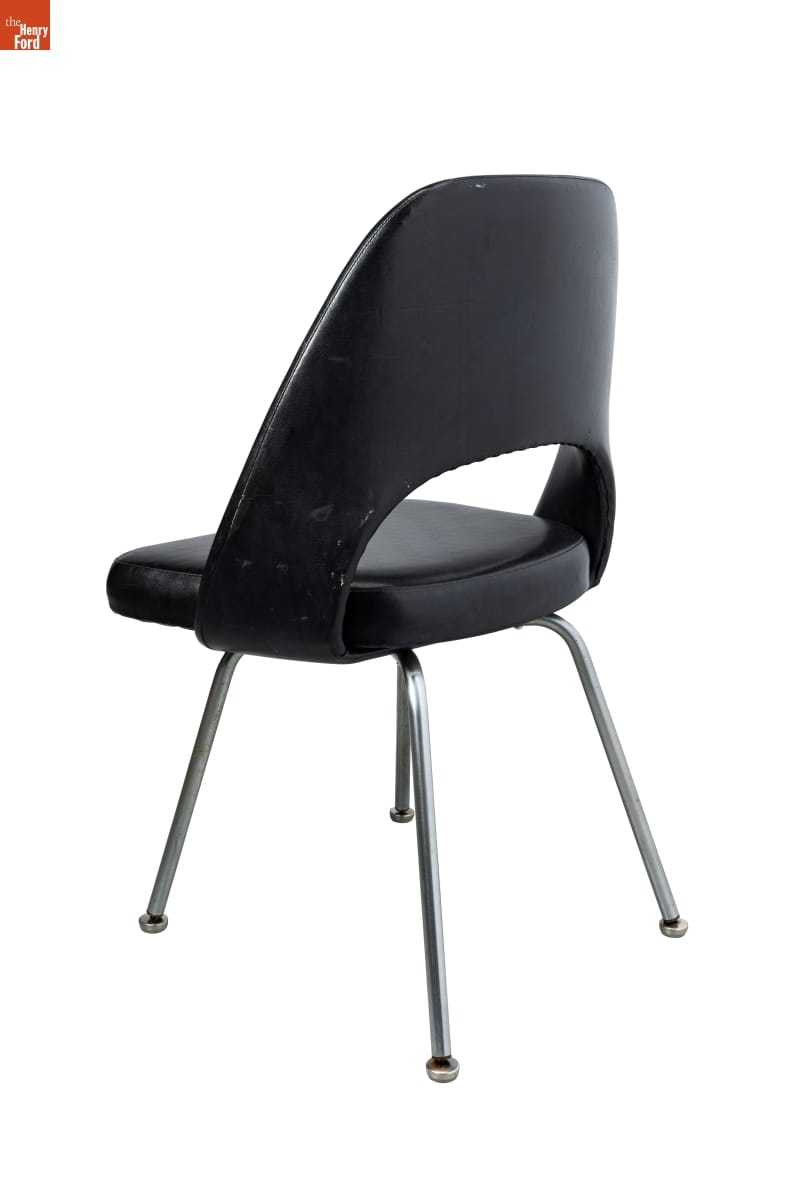 Finnish-American architect and designer Eero Saarinen grew up at the Cranbrook Academy of Art in nearby Bloomfield Hills, after his father designed the campus and became its first president. The relationships Saarinen cultivated at Cranbrook had lasting influence. This chair was produced by Knoll furniture company, then headed by a Cranbrook friend and classmate, Florence Schust Knoll, alongside her husband.