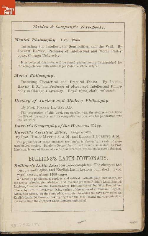 Book Used by Orville Wright, "Stoddard's American Intellectual Arithmetic," 1866