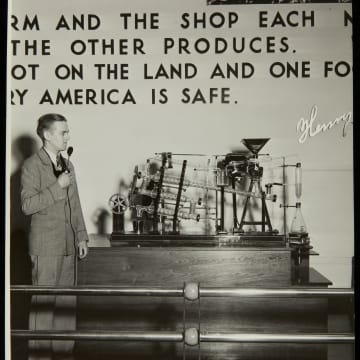 Henry Ford had a vision of farmers being part of the industrial process -- an idea he called "chemurgy." This idea was most completely played out in his experimentation with soybeans, a versatile crop that could be used for industrial products as well as food. This model demonstrates how oil could be extracted from soybeans and converted into many plastic-like products.