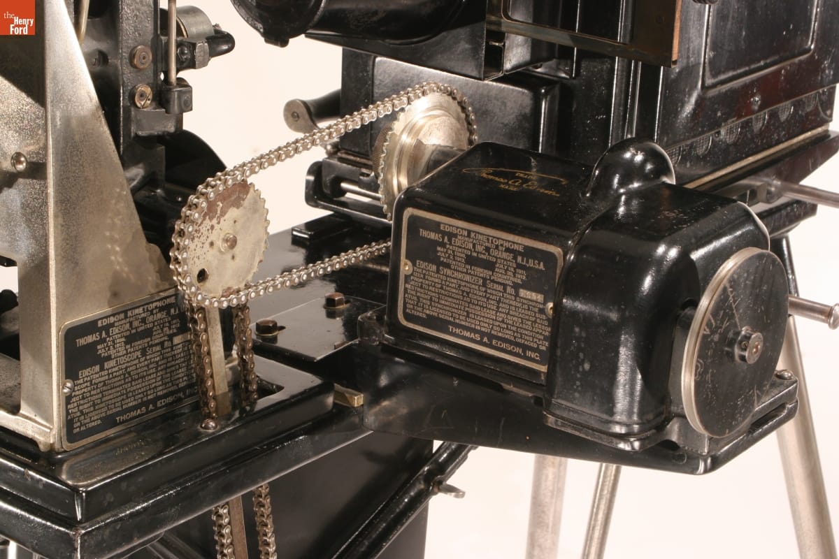Projector: EDISON KINETOSCOPE . . . MFRS' SERIAL NO. 4435 SPECIAL LICENSE K590 Projector: EDISON KINETOPHONE . . . EDISON KINETOSCOPE SERIAL NO. K590 Synchronizer: EDISON KINETOPHONE . . . EDISON SYNCHRONIZER SERIAL NO. K534 Kinetophone Front Plate: EDISON KINETOPHONE/MANUFACTURED BY/THOMAS A. EDISON, INC., ORANGE, N.J., U.S.A./PATENTED IN THE UNITED STATES/MAY 31, 1898.../EDISON KINETOPHONOGRAPH SERIAL NO. K526