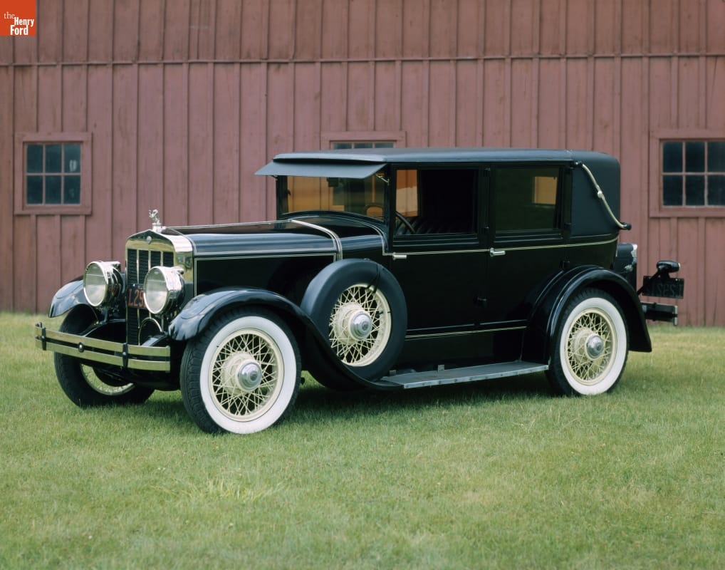 Franklin automobiles, built from 1902 until 1934, were distinguished by their air-cooled engines. When Charles Lindbergh flew across the Atlantic with an air-cooled motor in 1927, Franklin played up the connection by introducing an "Airman" sedan and giving this example to the aviator. In turn, Lindbergh gave the car to Henry Ford in 1940 for inclusion in Henry Ford Museum.