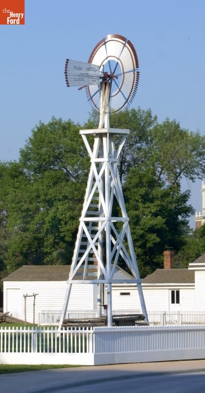 This windmill is similar to one purchased by William Ford, Henry Ford's father, and used on his Dearborn, Michigan, farm. Farmers throughout the United States in the late 1800s could purchase American prairie-style windmills like this one from scores of manufacturers. These labor-saving devices provided power for farm machinery and pumped well water used by the farmer's family and livestock.