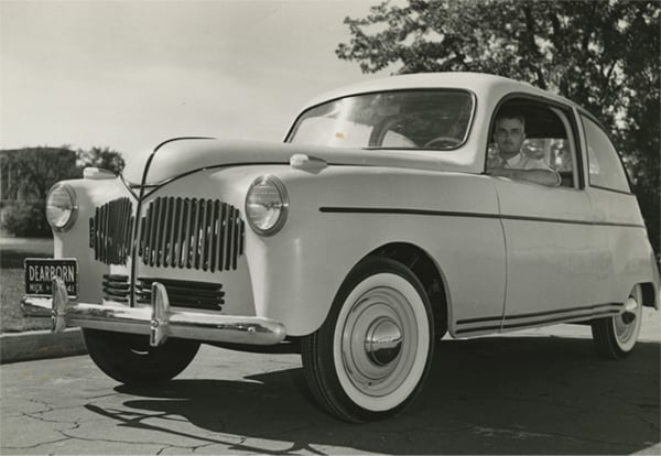 In the early 1940s, Henry Ford experimented with making plastic parts for automobiles. These experiments resulted in what was described as a "plastic car made from soybeans." Although this automobile never made it into the museum's collections, it remains a good example of innovative design.