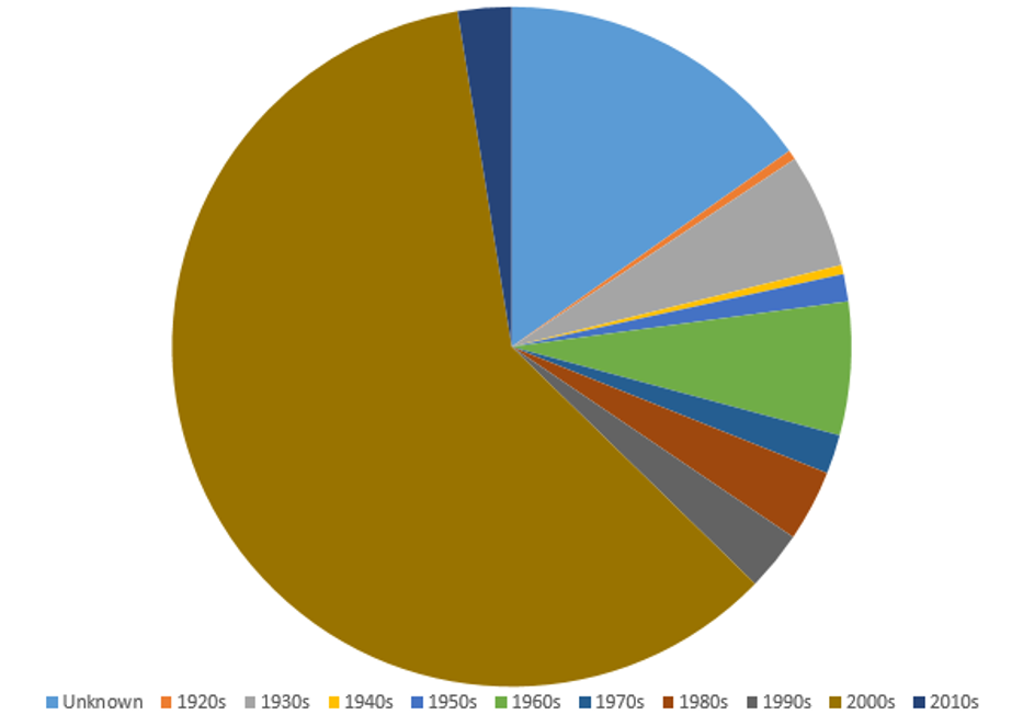 4. Nearly 2/3 of the material we digitized during 2014 (8,074 objects) was added to the collections of The Henry Ford during the 21st century (e.g., in the last 14 years). We also digitized 815 objects added to the collection during the 1960s, and 701 objects added to the collections in the 1930s—back in Henry Ford’s time. About 15% of the material we digitized in 2014 is considered “found in the collections”—we haven’t yet determined when it officially came to The Henry Ford.