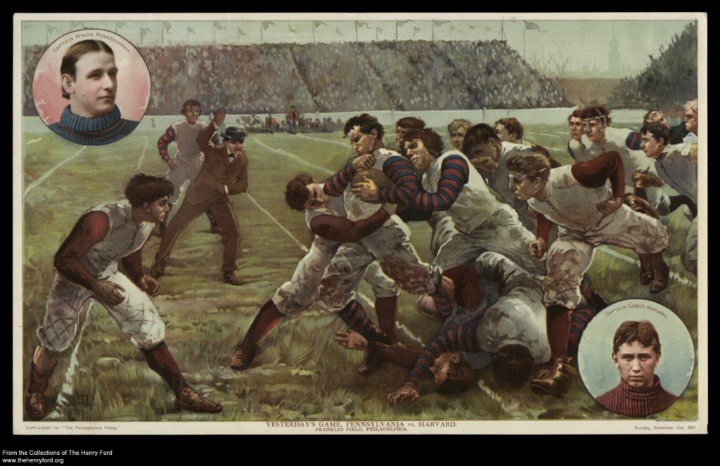 No helmets were used in this Pennsylvania vs. Harvard game from 1897 (THF117849).