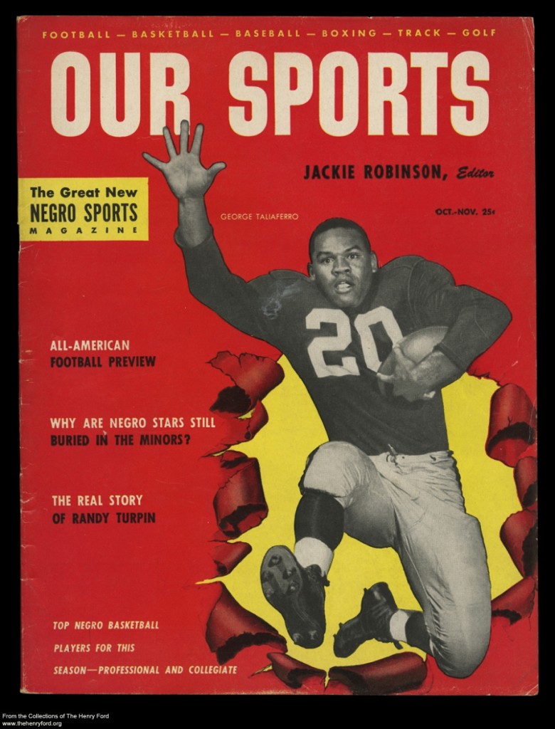 The cover of this 1953 Our Sports magazine featured George Taliaferro—an All-American rusher from Indiana University who became the first African-American player to be drafted by an NFL team (1949) (THF 99167).