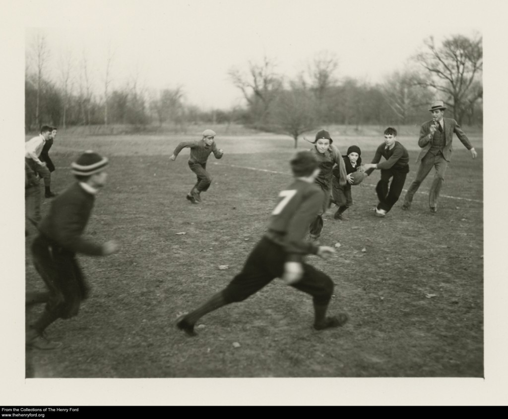An Edison Institute Schools football game in Greenfield Village, November 1934 (THF 118416a).