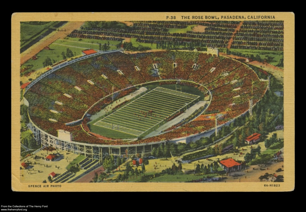 The official Rose Bowl stadium, shown in this postcard, was erected in 1923 (THF117847).