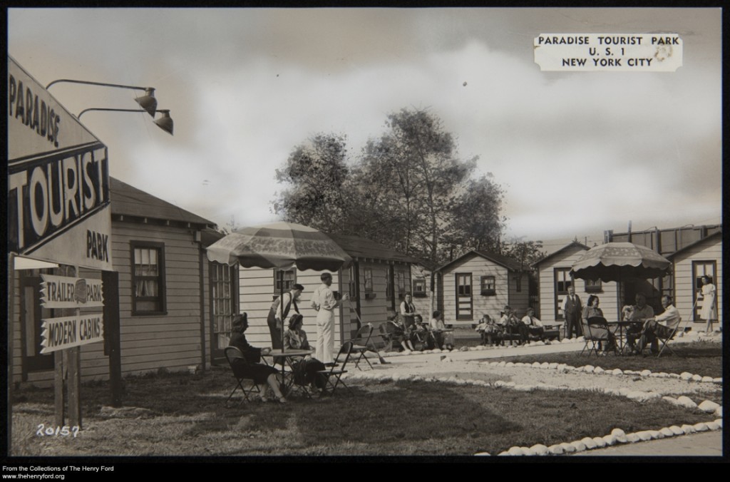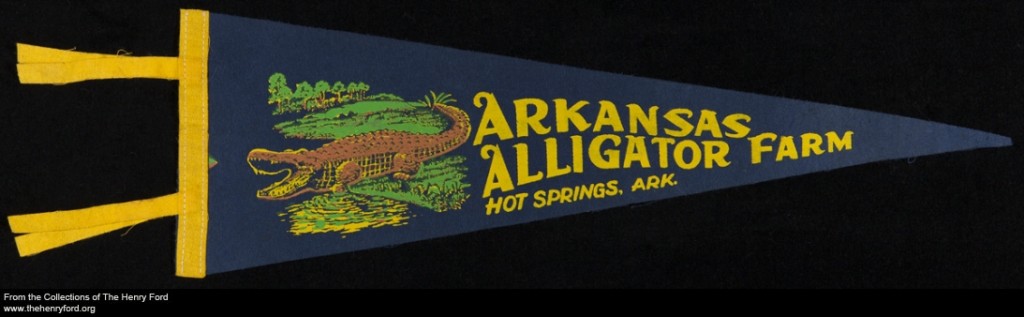 During the course of his travels, John Margolies also amassed an extensive collection of historical materials documenting the same vanishing American roadside that he was photographing. From this collection, Margolies donated to The Henry Ford souvenir pennants, do-not-disturb signs from hotels and motels, 1930s-era travel journals, and a group of postcard photographs produced by Dexter Press.