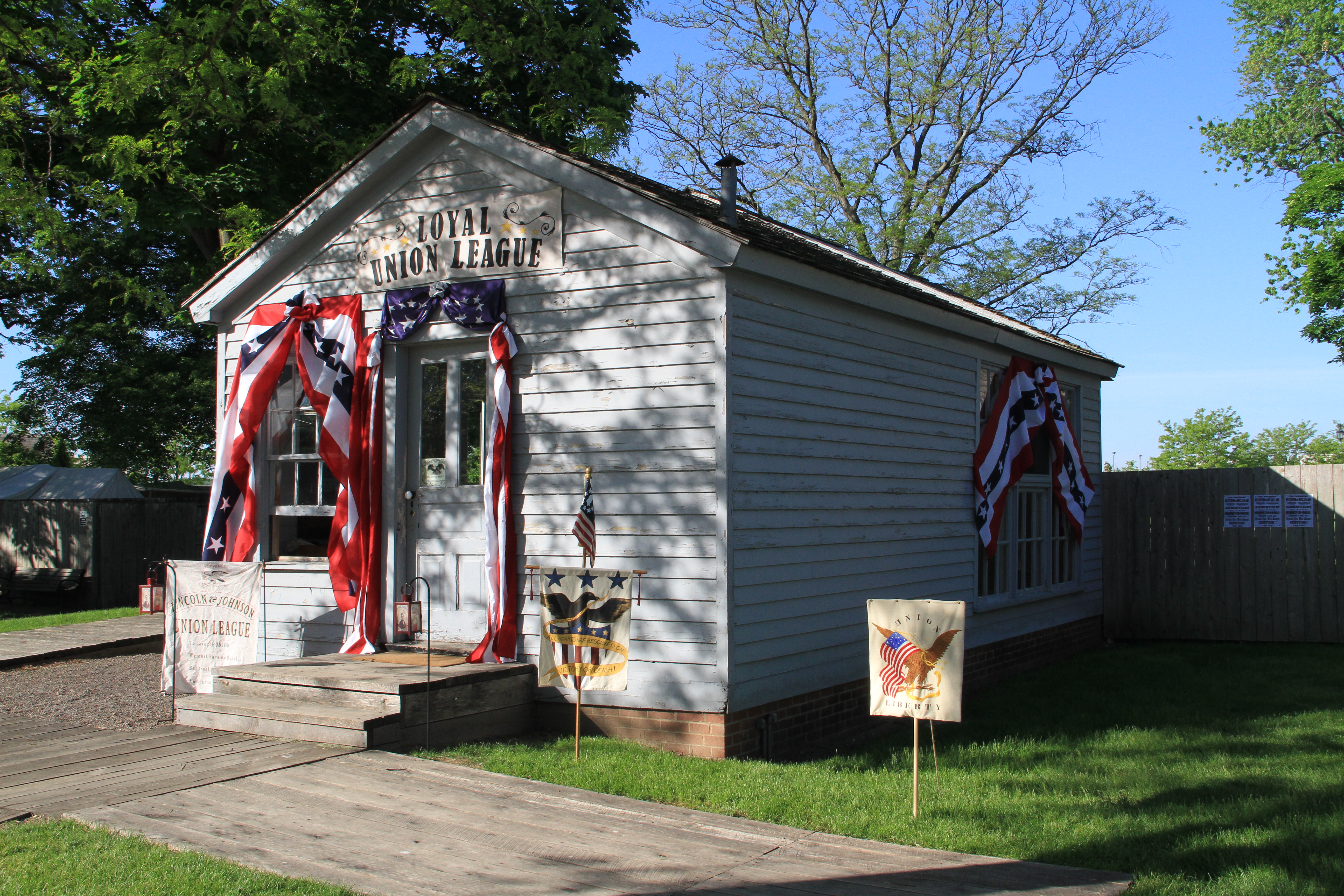 Guests to Civil War Remembrance at Greenfield Village 2014 may have been surprised to find the Tintype Studio transformed into a living history exhibit for the weekend. The small building was outfitted as a period social club called the Loyal Union League, serving as a Lincoln campaign headquarters for the 1864 presidential race. Last year marked the 150th anniversary of President Abraham Lincoln’s reelection to a second term in office and the exhibit explored how local Union Leagues throughout the country participated in the campaign.