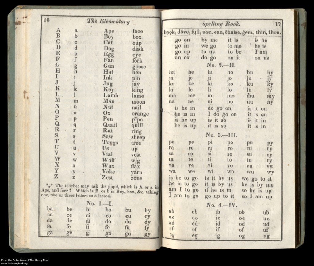 The Elementary Spelling Book, or the “Blue Backed Speller,” was used to teach several generations of Americans to spell and read. Over 100 million copies were sold in the 18th and 19th centuries.